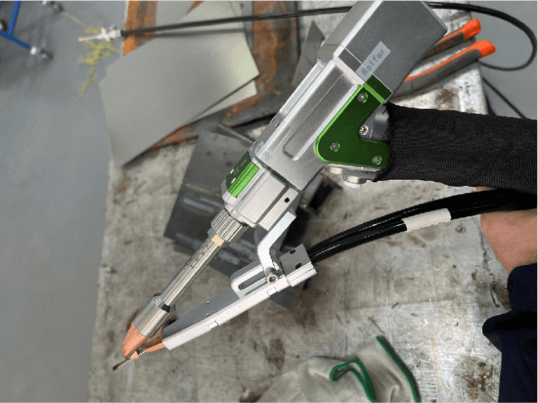 - Corte a laser: O corte a laser utiliza um feixe altamente focado para cortar materiais com precisão. Equipado com uma pistola de corte a laser, a máquina é ideal para cortar chapas e tubos de metal de forma portátil e eficiente.