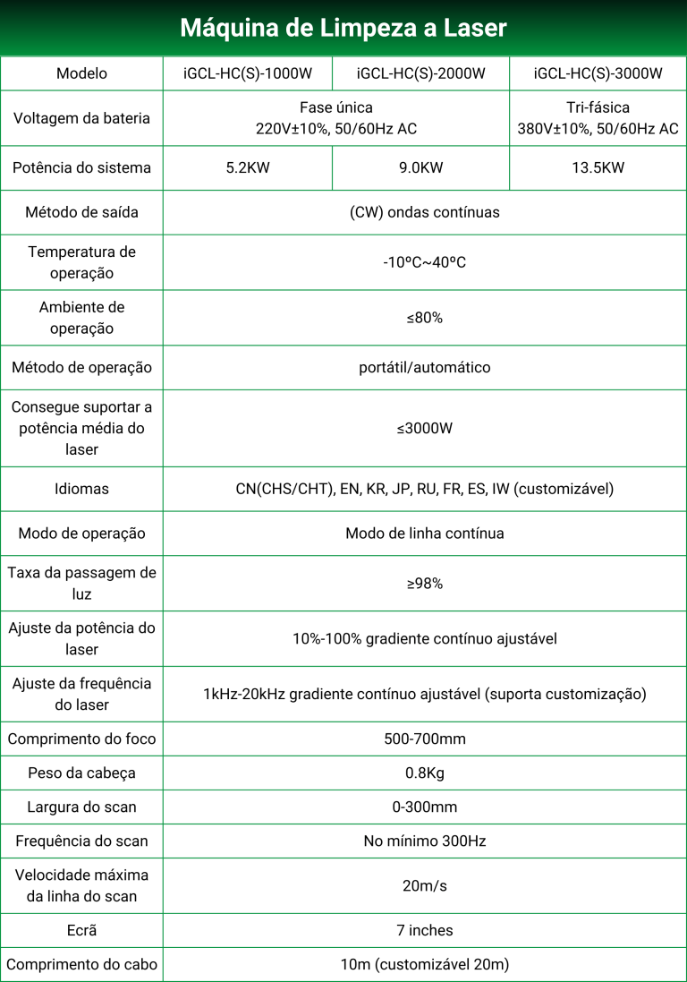 - O sistema de limpeza a laser é estável e requer quase nenhuma manutenção.